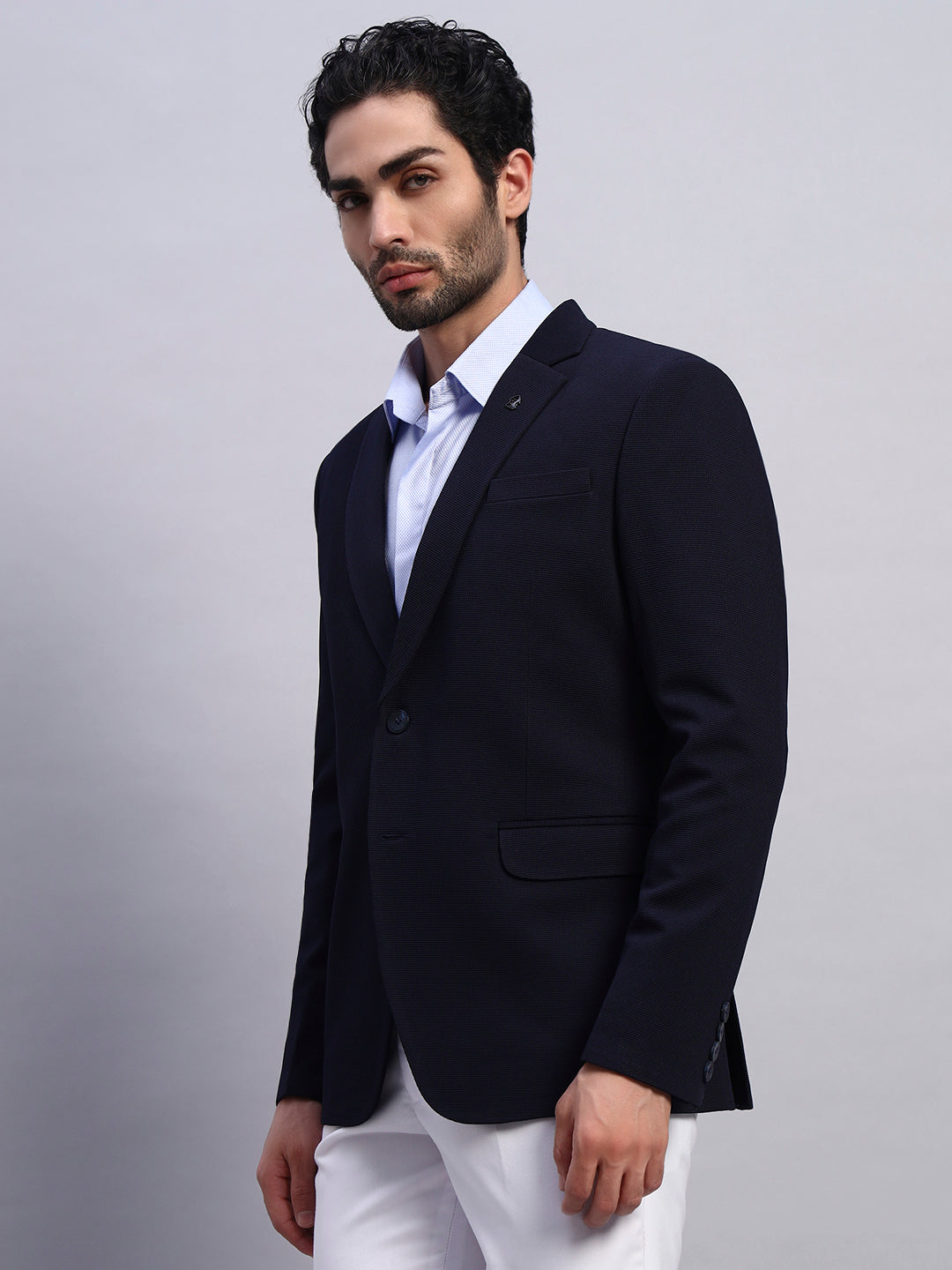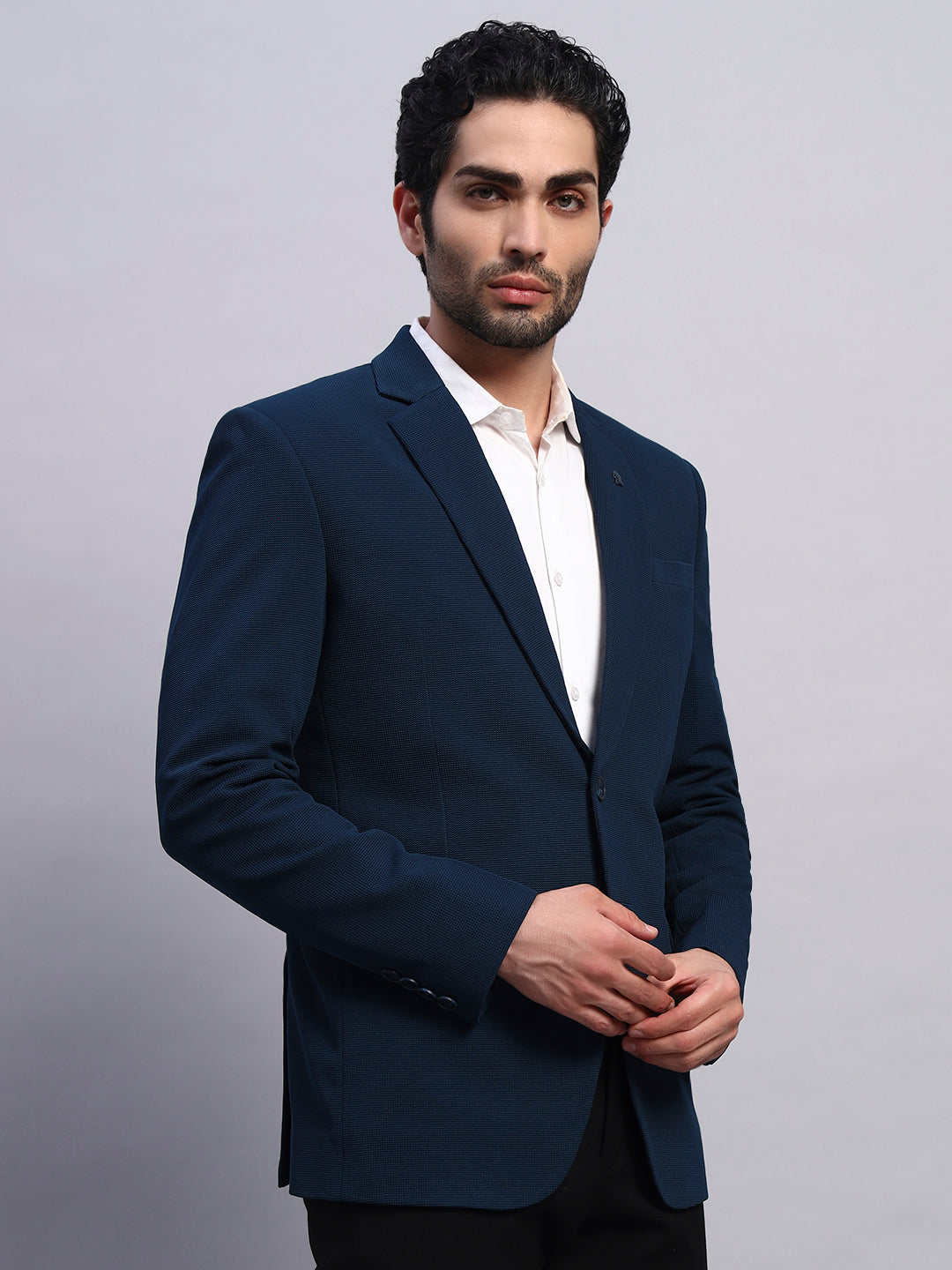 Men’s Navy Blue Slim Fit Single-Breasted Office and Party Wear Blazer