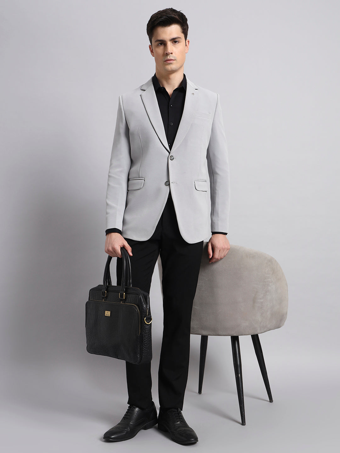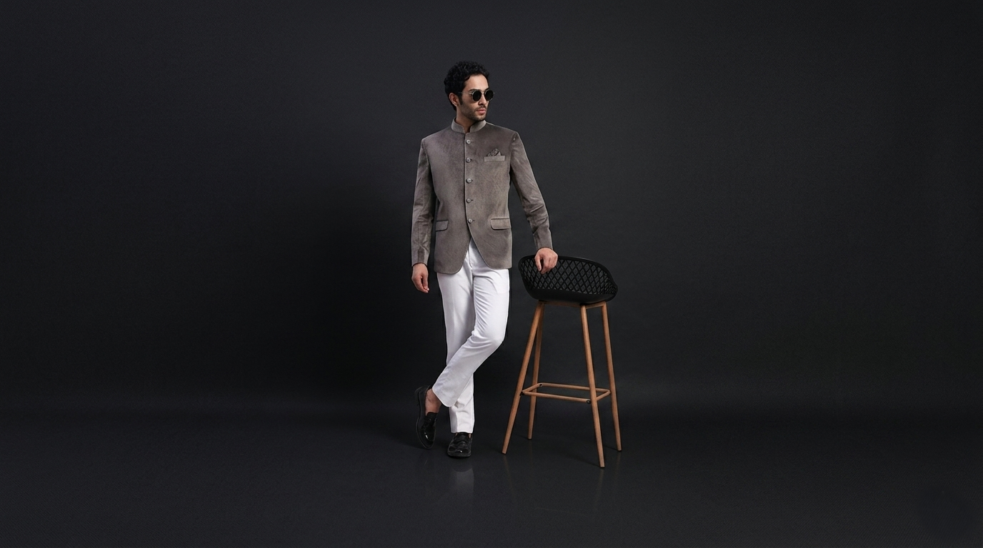 Men’s Grey Slim Fit Single-Breasted Office and Party Wear Blazer