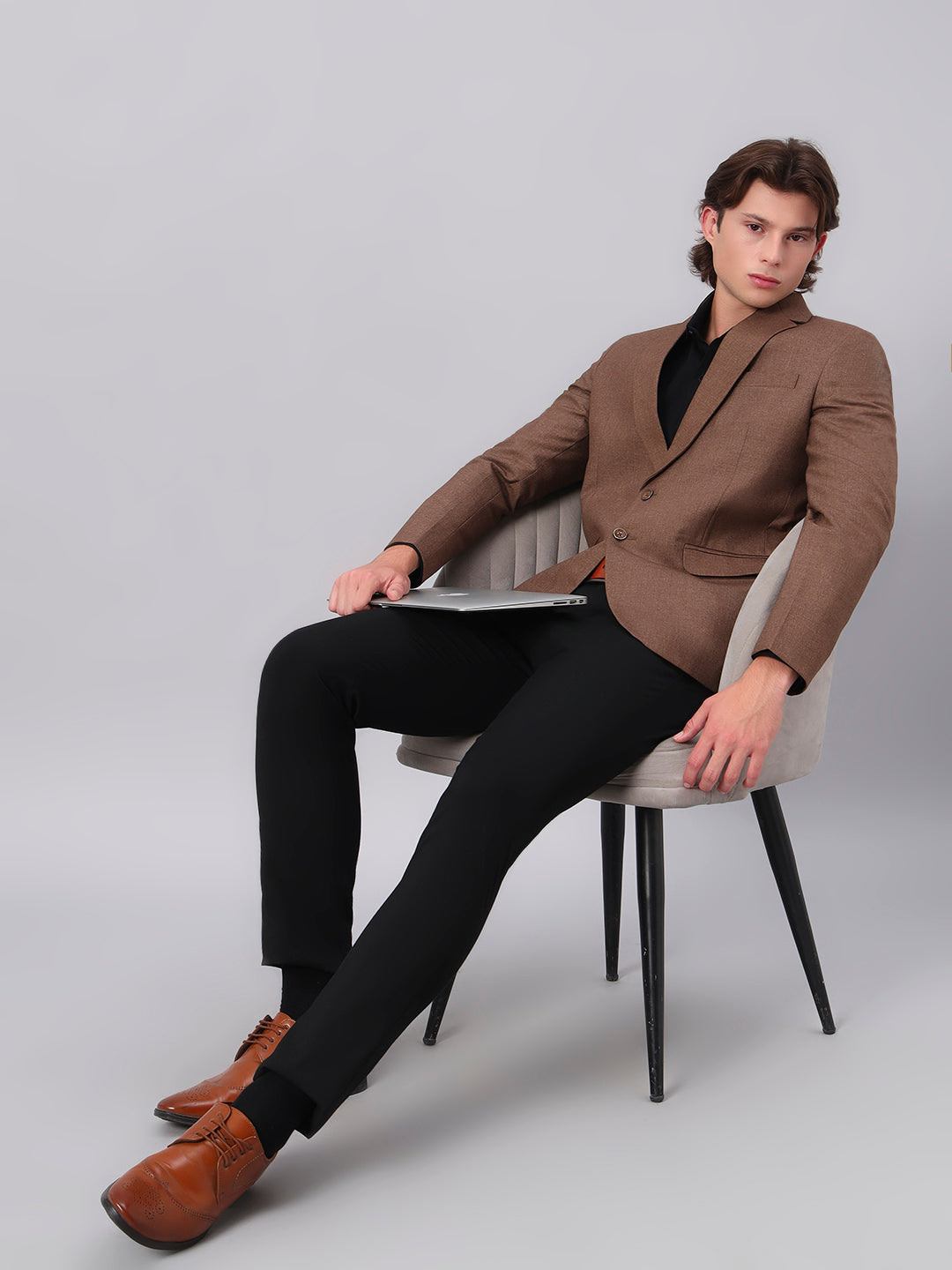 Men's Brown Slim Fit Blazer Single-Breasted Formal Party Blazer